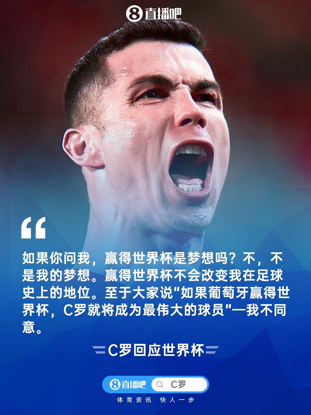 C罗:是的,赢得天下杯不会改革我在足球史上的地位。我不会撒谎,有一件事我很详情,我享受当下,况兼我跟着工夫学到了,"当下"是咱们所领有的最首要的东西。咱们葡萄牙队还没获取参赛履历呢。享受当下。三天前在里斯本竞技场,那嗅觉简直很相配。那可能是我在那座球场的临了一场比赛了,谁说得准呢?我很享受那一刻,我母亲在场,我家东谈主在场,嗅觉很棒。至于东谈主们说的“若是葡萄牙赢得天下杯,C罗就将成为最伟大的球员”——我不容或。