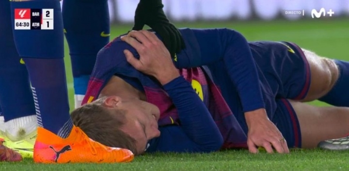 巴萨官方:奥尔莫左肩脱臼,决定保守养息,瞻望伤缺1个月