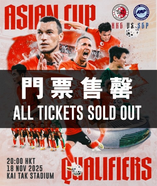 11月18日讯 今晚20:00,亚初赛第三阶段第5轮,中国香港代表队将镇守主场迎战新加坡队比赛将在启德大球场进行,而本场比赛的门票早已在本月7日就一齐售罄。
