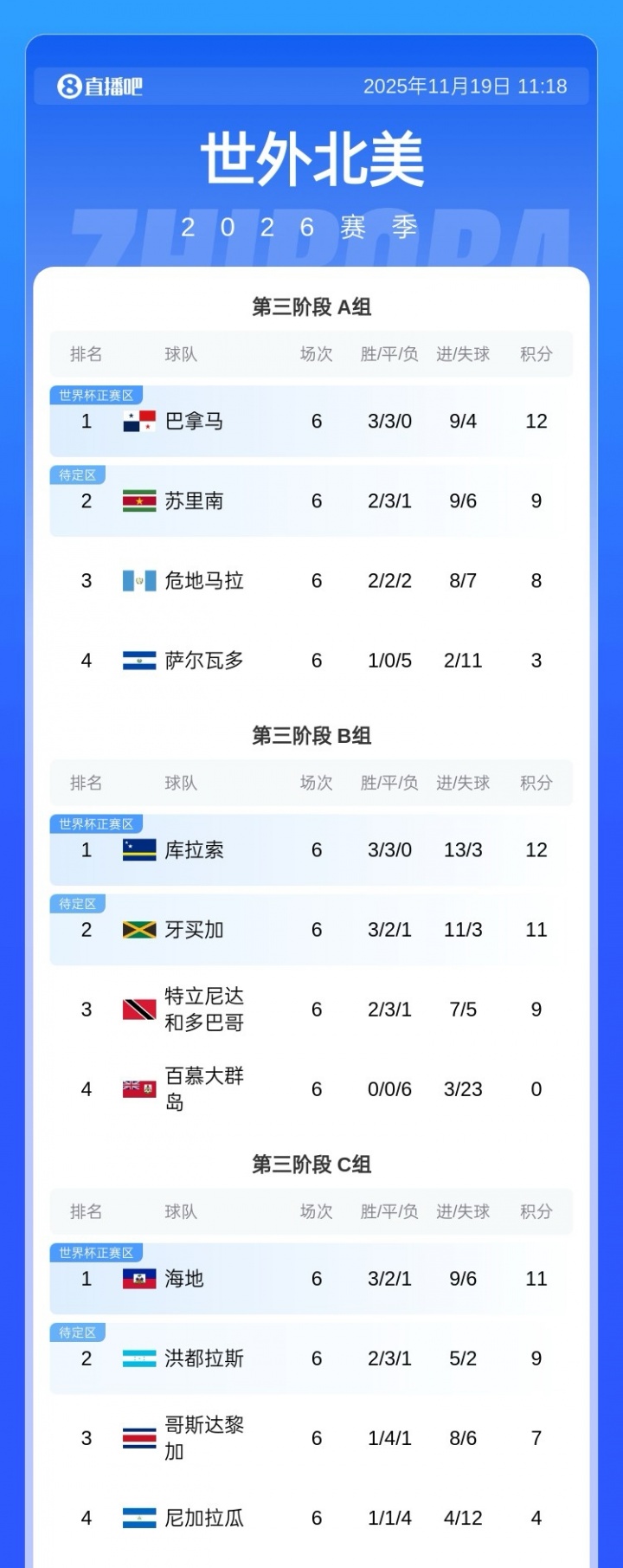 11月19日讯 中北好意思世初赛本日收官,苏里南末轮遭巴拿马超车,无缘纵贯天下杯,但凭借终末时辰制造的乌龙球,苏里南胜利挤掉洪齐拉斯,干涉洲际附加赛!