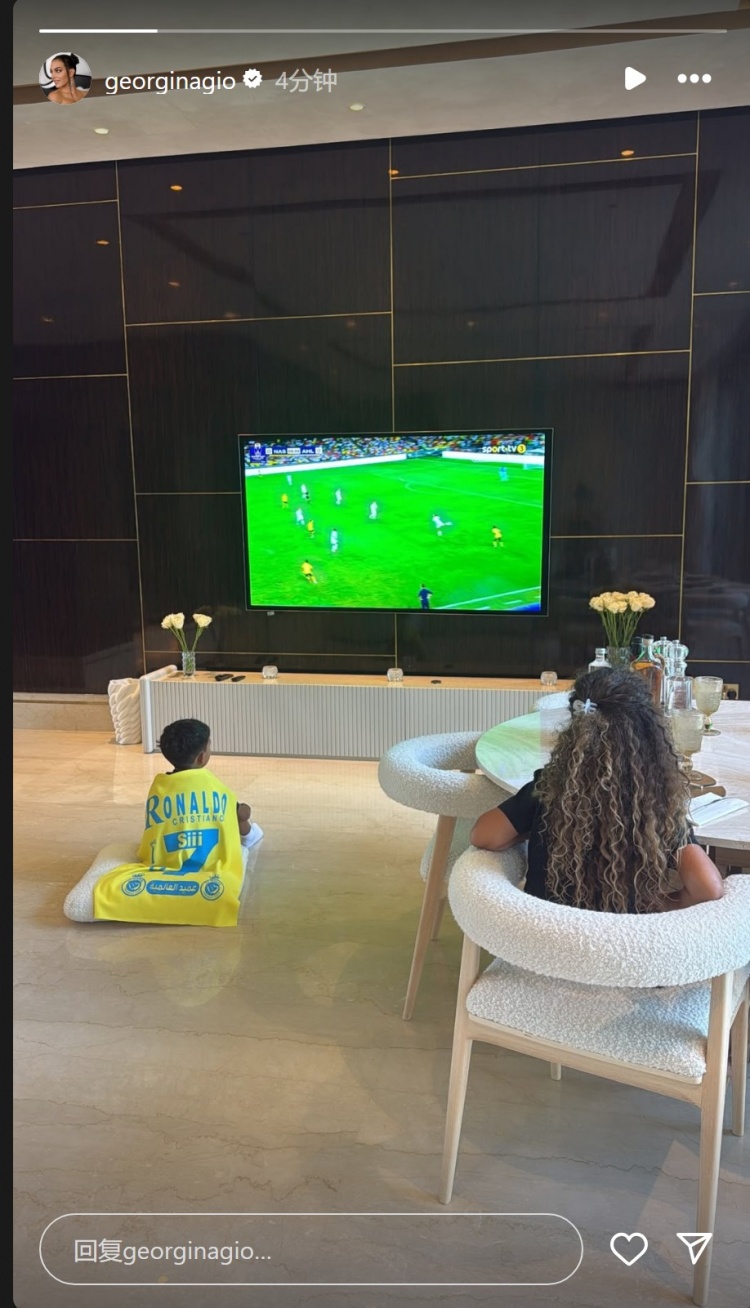 乔治娜晒不雅看沙超杯决赛直播相片,孩子们看电视复古父亲C罗