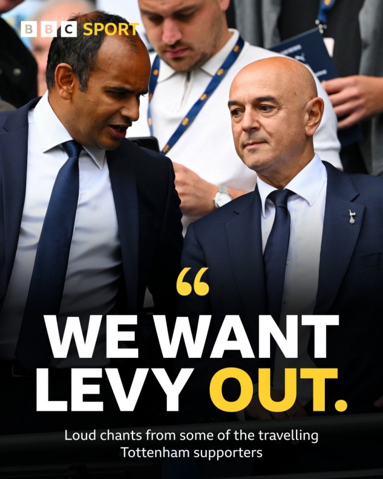 据BBC报说念,一些来到客场的热刺球迷对俱乐部主席列维感到发火,比赛开球不久之后,他们在看台上呐喊:“咱们要列维下课。”