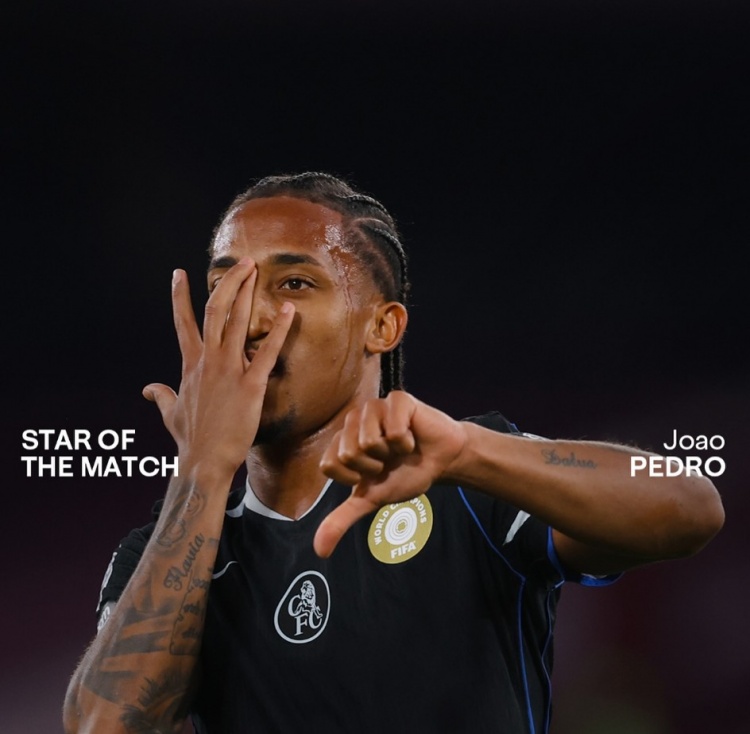 若昂-佩德罗此役为切尔西踢满全场,打进1球,助攻2次,切尔西官方通告,他当选本场比赛队内最好球员。