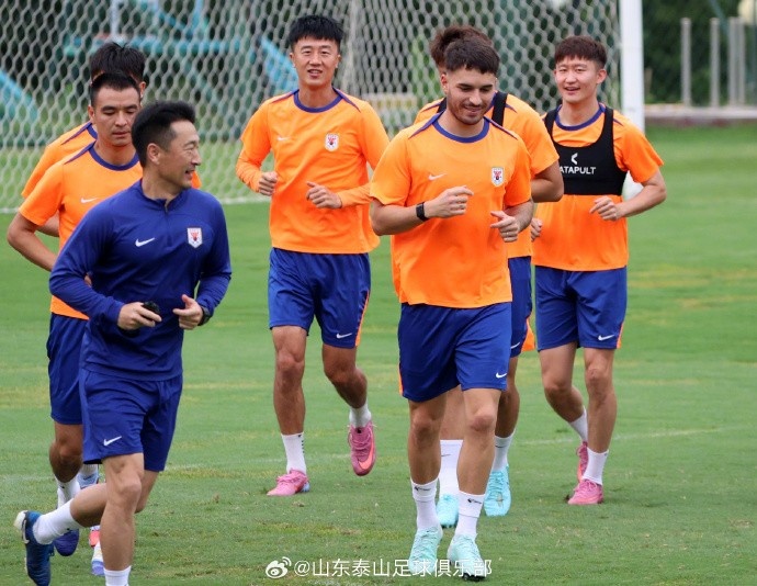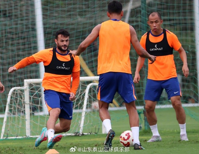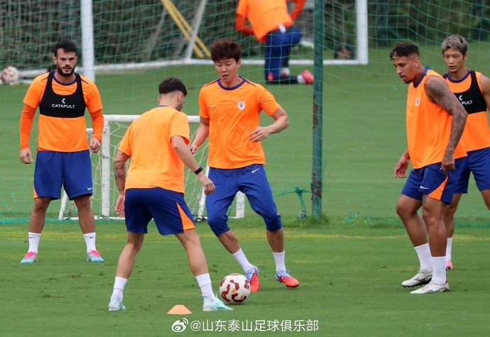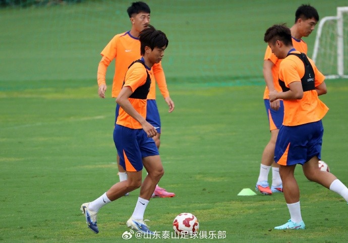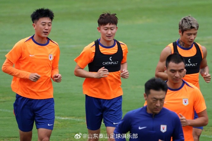 8月23日下昼,山东泰山队在基地内进行了与青岛西海岸队的赛前官方进修。