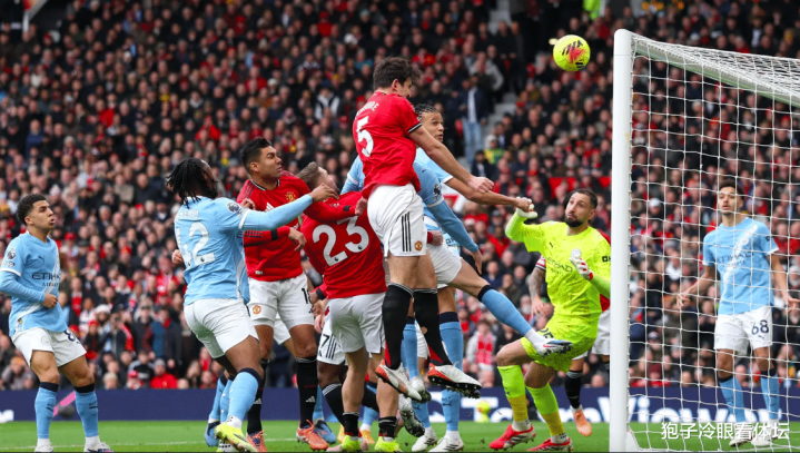开场唯有3分钟,曼联就通过定位球制造遏制,B费开出角球,马奎尔禁区内高高跃起,头球击中横梁弹了出来。