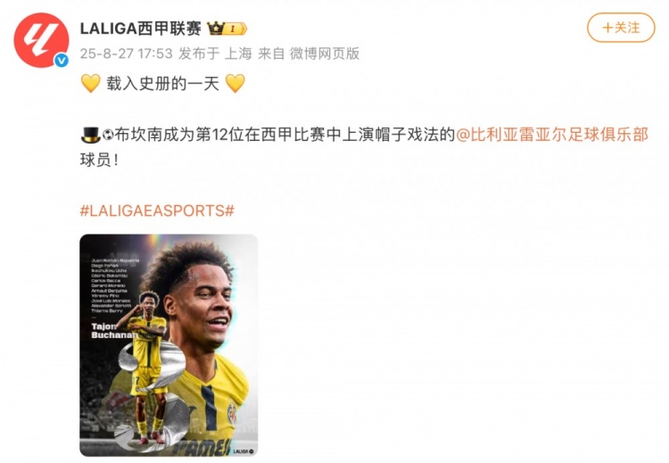三轮事后,比利亚雷亚尔暂列积分榜第三位,仅次于取得全胜的皇马和毕尔巴鄂竞技,凭借净胜球上风最初积分雷同的巴塞罗那,施展令东说念主印象深远。从国米加盟的布坎南打进3球,前阿森纳快马佩佩也有2球入账,球队恐怖的迫切火力,在西甲赛场得到了充分领路。