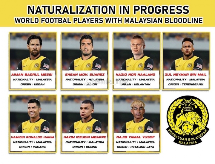本日趣图:马来西亚接下来该归化梅西C罗哈兰德姆巴佩了