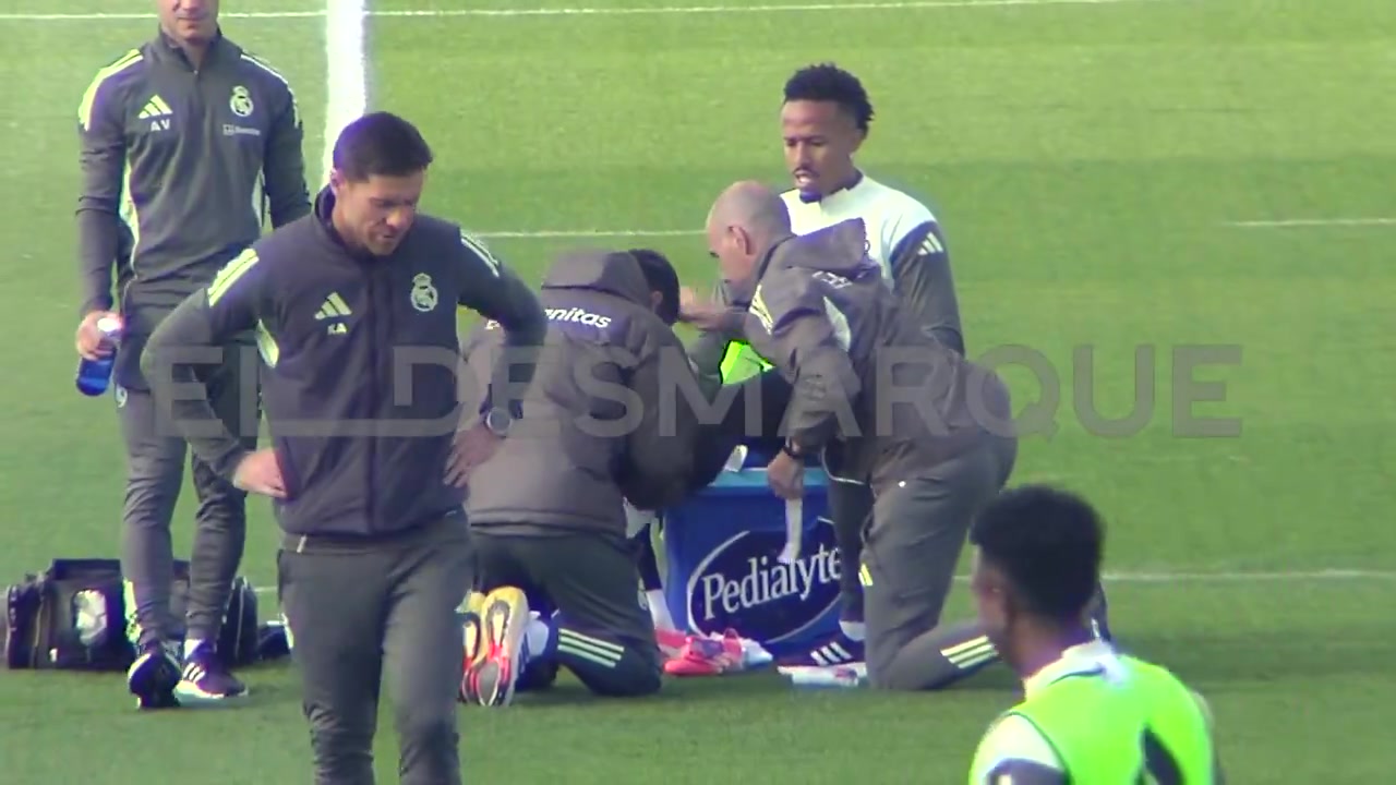 11月08日讯 西媒ElDesmarque放出了皇马磨砺的视频,米利唐受伤坐在水箱上,队医为他缠上绷带。阿隆索代替他上场完成了团队磨砺。